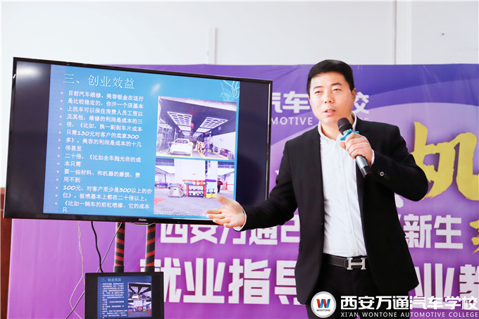 為幫助學生樹立創業意識,培養創業能力,11月20日上午十點,西安萬通汽車學校特邀到汽車美容教育專家、行業冠軍導師——張軍利,為學生們做題為《汽車行業領先創業》的講座。