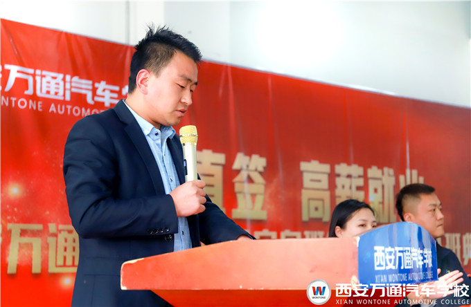 陜西博宏人事總監李總詳細分析了當前我國汽車服務企業發展的形式以及未來汽車后服務市場人才的發展方向,并對西安萬通的辦學水平給予高度評價。他表示通過校企定向培養,能夠依據市場需求,定制國家、行業急需的人才,助力市場經濟發展。