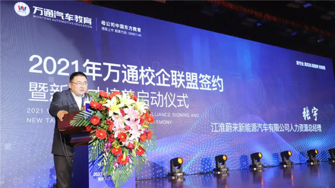 4月22日,技新天下 共贏未來——2021年萬通汽車教育校企聯盟簽約暨新人才培養啟動儀式在安徽合肥盛大舉行。安徽省人社廳職業能力建設處副處長徐文軍、中國東方教育集團汽車事業部總經理陶青、中國汽車工程學會應用服務分會副理事長張國方、中國東方教育集團汽車事業部常務副總經理李永朋、奇瑞汽車股份有限公司副總經理李康、江淮蔚來新能源汽車有限公司人力資源總經理張宇、寧波馳田貿易集團有限公司董事長徐敏俠、安徽航鷹無人機技術服務有限公司董事長許克濤、瑞意通用航空服務有限公司總經理郭禹彤,以及長安汽車、埃夫特智能設備、長城汽車、吉利汽車、上汽車享家、米其林馳加、風之星汽車、途虎養車、新奇特車業、浙江廣成汽車集團、江蘇大有汽車貿易等幾十家企業共同出席本次活動。