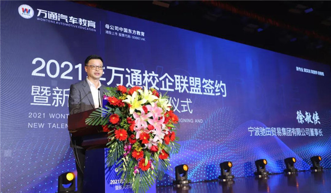 寧波馳田貿易集團董事長徐敏俠說,新的產業發展形勢,對汽車人才培養提出了更高的要求。我們愿意,與萬通形成校企共建,協同育人的產教融合模式,以校企合作帶動高質量人才培養,造就一大批具有精湛技藝的汽車行業工匠型人才。