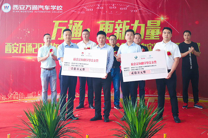 本次發布會上,出席的企業都是西安萬通的校企合作單位,與西安萬通的職教發展有著良好的戰略性合作。西安恒泰汽車服務有限公司與金花寶馬AO奧迪汽車維修服務有限公司共贈予西安萬通30萬助學金,校企定向培育學子,幫助學子順利掌握技能,完成學業。