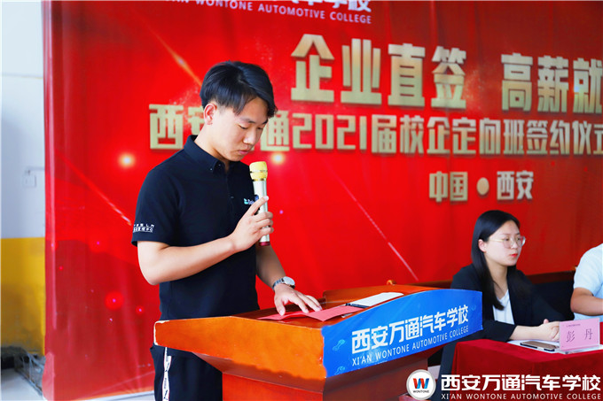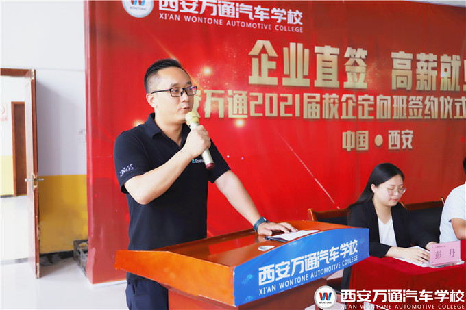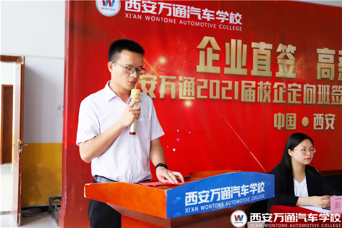 西安萬(wàn)通鄭助在講話中強(qiáng)調(diào),西安萬(wàn)通汽車學(xué)校注重每一個(gè)畢業(yè)生的未來(lái)發(fā)展,將不遺余力地為同學(xué)們創(chuàng)造良好的學(xué)習(xí)實(shí)訓(xùn)條件,鍛煉好進(jìn)入企業(yè)的所需各項(xiàng)必備技能,也希望同學(xué)們一定要珍惜時(shí)間,查缺補(bǔ)漏,踏實(shí)努力強(qiáng)化技能,提升自身職業(yè)素養(yǎng)。