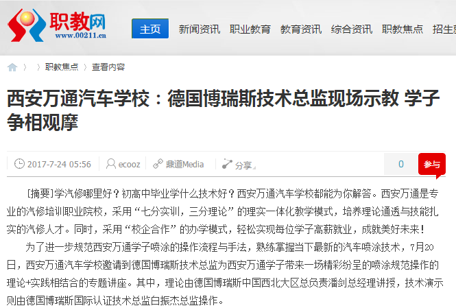 為了進(jìn)一步規(guī)范西安萬通學(xué)子噴涂的操作流程與手法,熟練掌握當(dāng)下最新的汽車噴涂技術(shù),7月20日,西安萬通汽車學(xué)校邀請到德國博瑞斯技術(shù)總監(jiān)為西安萬通學(xué)子帶來一場精彩紛呈的噴涂規(guī)范操作的理論+實踐相結(jié)合的專題講座。其中,理論由德國博瑞斯中國西北大區(qū)總負(fù)責(zé)潘劍總經(jīng)理講授,技術(shù)演示則由德國博瑞斯國際認(rèn)證技術(shù)總監(jiān)白振杰總監(jiān)操作。
