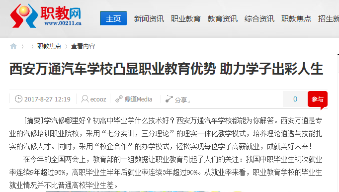 【職教網】西安萬通凸顯職業教育優勢 助力學子出彩人生