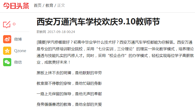 【今日頭條】西安萬通汽車學校歡慶9.10教師節