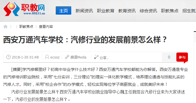 【貴州網(wǎng)】西安萬通汽車學(xué)校學(xué)汽修技術(shù)創(chuàng)業(yè)怎么樣