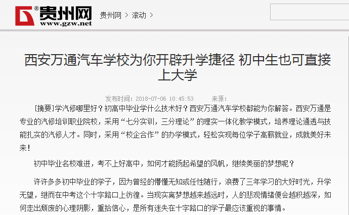 【貴州網(wǎng)】初中生也可直接上大學(xué) 萬通為你開辟升學(xué)捷徑