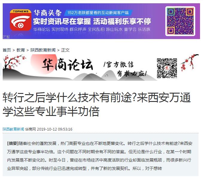 【華商網(wǎng)】轉(zhuǎn)行之后學(xué)什么技術(shù)有前途?來西安萬通學(xué)這些專業(yè)事半