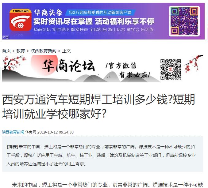 短期培訓就業學校哪家好?西安萬通汽車學校隸屬新華教育集團,擁有31年教學經驗。在焊接專業培訓中具有以下優勢,“80%實訓+20%理論、行業名師云集、耗材無限用”等。使來我校學習焊接的人群,真正學到真技術、真本事,往期考證通過率高達98%。