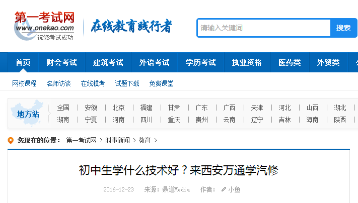 【第一考試網】初中生學什么技術好?來西安萬通學汽修