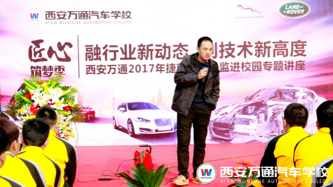 2017年2月27日,捷豹路虎技術總監楊周亮先生走進西安萬通汽車學校,為同學們講解汽修行業最新知識。作為具有十余年一線汽修經驗的技術總監,楊總監的到來受到西安萬通全體師生熱烈歡迎。