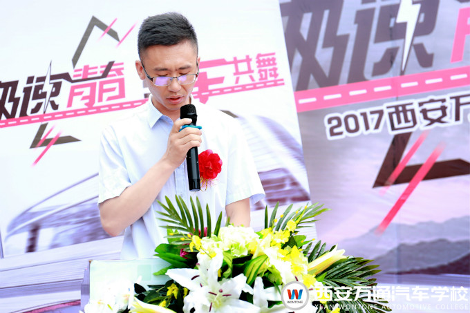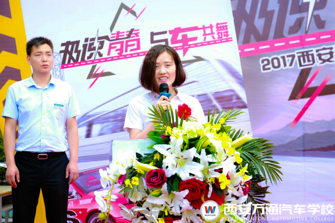 每天美車汽車服務連鎖王楠經理作為企業代表進行發言,王經理說道,在現如今高速發展的社會里,汽車行業的發展離不開高技術汽車人才的強有力支持,西安萬通汽車學校作為汽車技術人才的搖籃,為企業的發展提供了保障,而且從本屆汽車文化節的火熱氛圍也能感受到西安萬通學子的良好精神風貌與精湛的實訓技能。