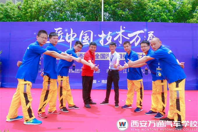 據悉,此次第七屆“萬通杯”全國汽車維修技能大賽在江西南昌舉辦,在海選的時候就有三萬余學子報名參賽。西安萬通對本屆“萬通杯”大賽表現出了高度重視,選拔出以2+1大專1701班朱治全和張偉、汽車電氣電控工程師1701班屈楊偉、汽車鈑噴美技師班楊龍、汽車鈑噴美技師班胡金海以及汽車美容技師班楊慧峰等6名學子代表為戰隊成員的參賽隊。經歷兩天激烈的比賽,在實力戰將云集的情況下,西安萬通的楊慧峰同學獲得汽車美容項目比賽一等獎的優秀成績,楊龍等其他5名參賽學子同學也分別獲得汽車鈑金項目三等獎等好成績。