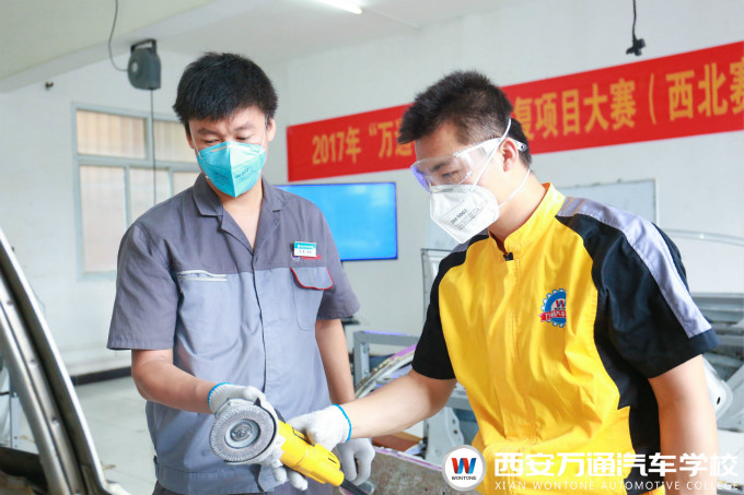 其中,汽車鈑噴教學組的王偉老師就是一位優秀的“雙師型”教師。王偉老師自進入這個行業,就在陜西廣汽本田冠群4S店供職,從事的領域便是汽車鈑金修復。在企業工作期間,肯思考、勤動手,各方面綜合素質都表現的很優秀,由于受到公司的重視,還經常被派到北京總部培訓。而且,王偉老師所帶的團隊常常摘得公司里的優秀團隊,就這樣他從一名小工一直奮斗到了維修部主管。