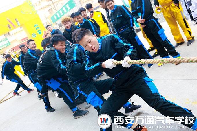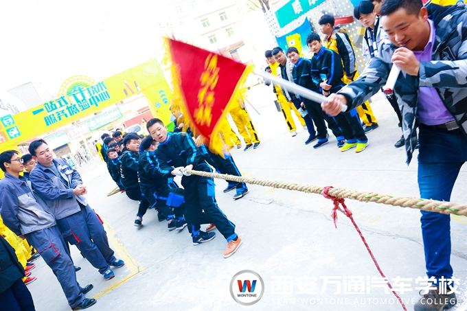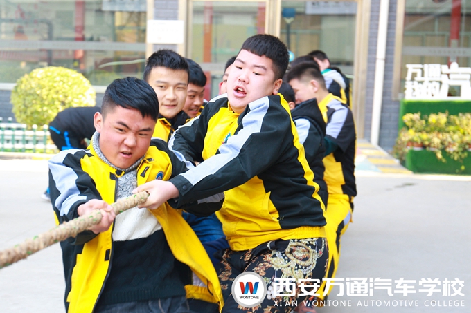 一場別開生面的拔河比賽正西安萬通汽車學校的操場上演著,此次拔河比賽拉開了本屆冬季拔河比賽的序幕。一到比賽時間,同學們就紛紛來到了籃球場,參賽的同學全都卷起了袖子。有的再次緊了緊鞋帶,有的在那里活動活動手和腳。大家都非常緊張,又十分激動。每個隊員都摩拳擦掌,準備大展身手。