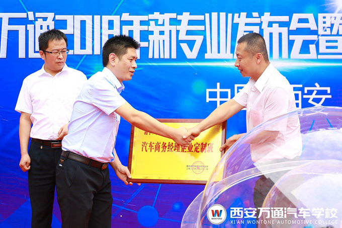 為了適應國家新能源技術發展戰略的宏偉目標,以及汽車后服務市場發展中對綜合型汽車技能人才的高標準需求。2018年6月21日,西安萬通汽車學校隆重舉行了西安萬通2018年新專業發布會暨企業定制班揭牌儀式。