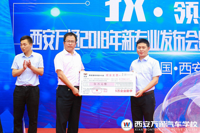 接下來,便到了激動人心的時刻。在主持人的邀請下,出席發布會的各位領導嘉賓在陣陣熱烈的掌聲中啟動了新專業升級發布啟動球,標志著西安萬通新能源汽車技術專業和汽車商務經理專業成功升級正式發布。 同樣值得一喜的是,西安國利帝豪4S店與陽光保險集團分別授予西安萬通“新能源技術企業定制班”和“汽車商務經理企業定制班”,校企合作,企業定制,又一波校企定制班面向廣大師生。而且,為了鼓勵校企定制班的學子能扎實掌握技能,順利通過企業考核,兩家企業都設置了企業助學金項目,分別向校企定制班捐贈5萬元的企業助學金。