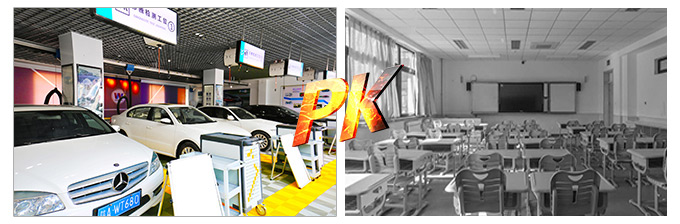 西安萬通:設備齊全 ,數量充足;引進現代化設備 ,與市場前沿接軌;學生70%的時間是拆裝實訓。