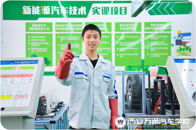 在西安萬通,程帥琦學的是新能源汽車技術,學校里很多實訓,很好的教學,很精良的設備,也使程帥琦對學好這門技術有著很強的信心與決心。到目前為止,程帥琦在西安萬通已經第十天了,雖然自己高一沒讀完就輟學了,但自己的學習能力還是有的,經過老師的指點,運用有效的學習方法,就能很扎實的掌握老師教授的知識技能。