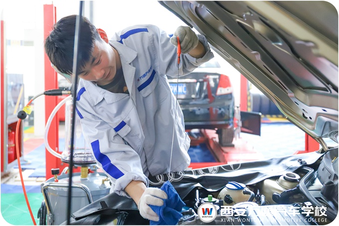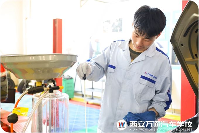 這堅(jiān)定了他學(xué)習(xí)汽修的決心,再加上有母親的鼓勵(lì),他所需要的就是找一家優(yōu)質(zhì)的汽修學(xué)校了。通過朋友介紹和自己實(shí)地考察,他選中了西安萬(wàn)通汽車學(xué)校,西安萬(wàn)通30多年的辦學(xué)經(jīng)驗(yàn)、強(qiáng)大的師資力量和校企定制等創(chuàng)就業(yè)保障制度,以及漂亮整齊的校園環(huán)境、功能齊全的實(shí)訓(xùn)中心(實(shí)訓(xùn)群)、優(yōu)美舒適的師生公寓、標(biāo)準(zhǔn)化的運(yùn)動(dòng)場(chǎng)都讓他覺得這里是是學(xué)生快樂學(xué)習(xí)、技能成長(zhǎng)、實(shí)現(xiàn)汽車人生夢(mèng)想的理想搖籃。