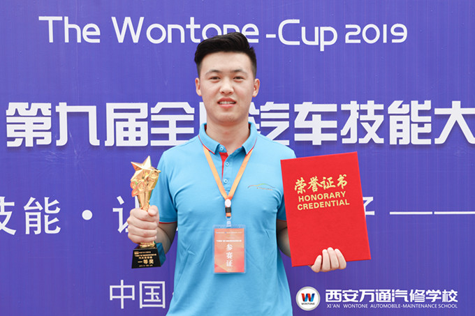 楊春暉,西安萬通學校1701班學員,今年22歲,來自素有“小江南”之稱的甘肅省隴南市,和他所在的城市一樣,他也是個陽光帥氣的運動型大男孩。與大部分學子相同,他是因為非常喜歡車所以不遠千里來到了西安萬通大家庭。因為喜愛,所以想要更進一步接觸、了解,也正是因為這份喜愛和選擇,讓他獲得了參賽機會,獲得了這個全國性賽事的冠軍。