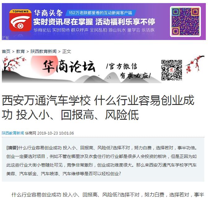什么行業(yè)容易創(chuàng)業(yè)成功 投入小、回報(bào)高、風(fēng)險(xiǎn)低?選擇不對(duì),努力白費(fèi),選擇若對(duì),事半功倍。 創(chuàng)業(yè)一定要選對(duì)項(xiàng)目,例如不管在哪里涉及衣食住行的行業(yè)都是很多人會(huì)投資的板塊,但是正因?yàn)槿绱诉@些行業(yè)大街小巷隨處可見,競(jìng)爭(zhēng)非常激烈,創(chuàng)業(yè)成功難度很大。那么來西安萬通汽車學(xué)校學(xué)汽車美容、汽車鈑金、汽車噴漆、汽車維修等是否可以輕松創(chuàng)業(yè)?