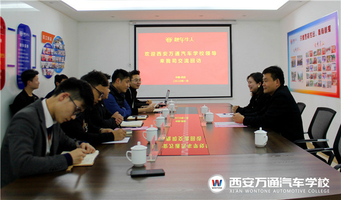 為踐行“愛與責任”的教育理念 ,加強校企合作深度,2020年1月6日,西安萬通汽車學校校長韓明攜同創就業指導中心主管等相關單位負責人前往靚車牛人汽車美容連鎖企業,開展了對優秀畢業學子的交流回訪工作。并與靚車牛人董事長廖占發、總經理助理王新星等共同出席了回訪交流座談會。