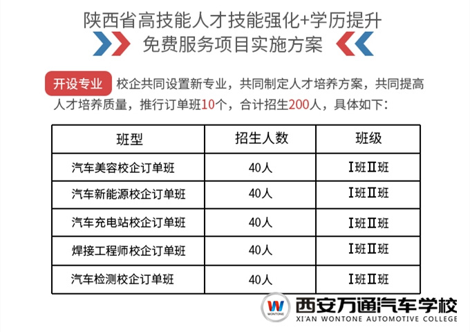 為強化職業(yè)技能培訓,助力國家脫貧攻堅決策部署,西安萬通汽車學校依據(jù)陜西省人民政府關于《陜西省人民政府關于印發(fā)職業(yè)教育改革實施方案的通知》的要求,認真落實文件精神,貫徹執(zhí)行職教改革,以健全職業(yè)教育體系、深化產(chǎn)教融合、提高人才培養(yǎng)質量為目的,全面啟動“春蕾行動”。作為西安萬通汽車學校推出的陜西省高技能人才技能強化+學歷提升免費服務項目,“春蕾行動”面向初高中畢業(yè)未升學學生、退役軍人、退役運動員、下崗職工、返鄉(xiāng)農民工、新型職業(yè)農民、待業(yè)青年等全面招生。相關政策詳情如下: