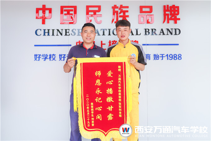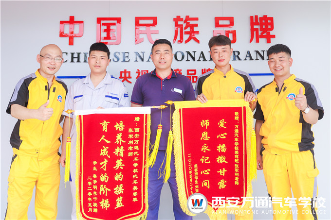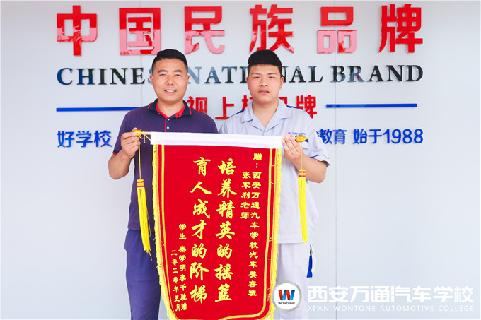 歷苦耕耘勤育李,諄諄教誨記心中。近日,西安萬通汽車學校2020屆汽車美容店長班專業的優秀畢業生秦學明、李千馳、劉亞奎同學向西安萬通汽車學校悉心培育他們的張軍利老師送出了兩面錦旗,以此表達了自己對母校和老師的敬意與感恩之情。