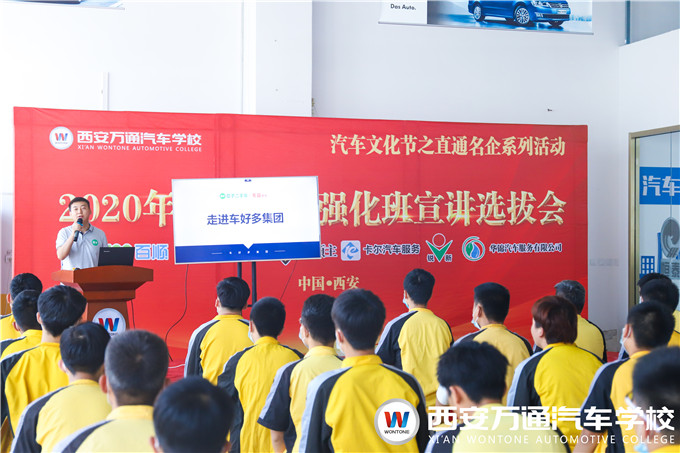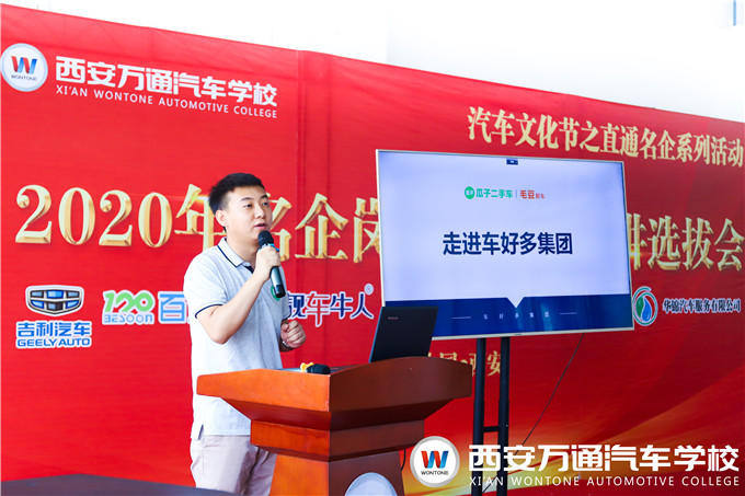 為了滿足西安萬通汽車學校畢業(yè)學子的就業(yè)愿望和企業(yè)的用工需求,6月30日上午11點,車好多集團旗下瓜子二手車品牌銷售主管馮經理來校舉辦專場招聘宣講會,給萬通學子一個近距離了解企業(yè)的機會。