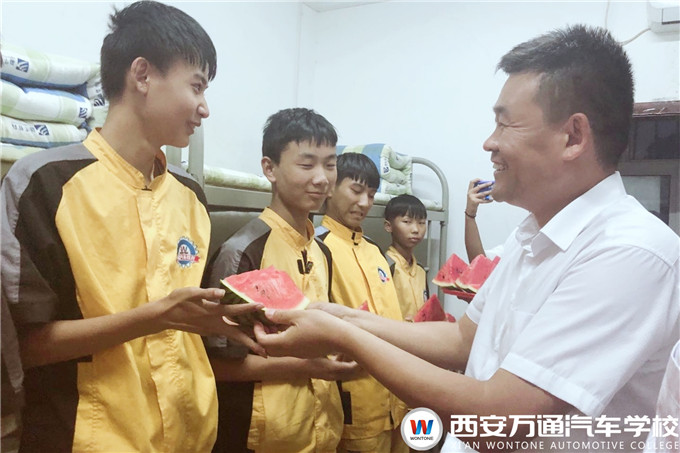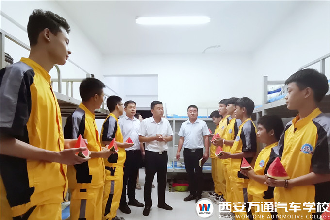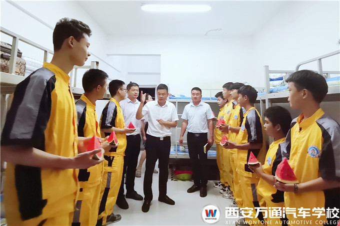 又是一年開學季,2020級新生滿懷著憧憬與希望,終于踏進了夢想的西安萬通校門,期待開始自己全新的旅程。為了新生們能夠快速適應在萬通的學習生活,西安萬通韓校長攜校長助理爨助、學生處張主管接連兩天走訪新生宿舍,帶著一盤盤甘甜可口的西瓜向新生表達了慰問,送去了涼爽,并與同學們進行了深入交流。