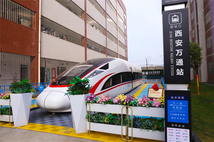 3、專業實訓室 為了讓學生掌握前沿技術,西安萬通引進高鐵模擬艙,外觀按照復興號1:1仿真制作,長18米、寬3.25米、 高2.8米、空載13噸,含有復興號型車頭、列車控制室、一等座旅客、二等座旅客、餐車吧臺、洗漱間等功能區域。