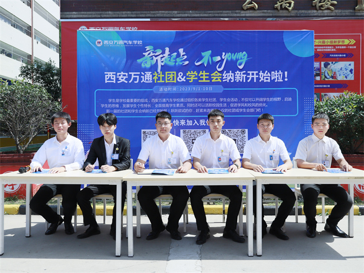 “同學(xué),你要不要參加新媒體社團(tuán),來(lái),看一下我們的宣傳頁(yè)吧。我們社團(tuán)……”近日,西安萬(wàn)通汽車(chē)學(xué)校2023年秋季新學(xué)期的學(xué)生會(huì)納新和社團(tuán)納新活動(dòng)開(kāi)始了,吸引眾多同學(xué)紛紛前來(lái)觀(guān)看咨詢(xún),場(chǎng)面異常熱鬧。