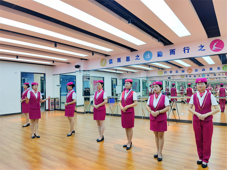 02 設(shè)施設(shè)備齊全 學(xué)校擁有先進(jìn)的教學(xué)設(shè)施和設(shè)備,包括高鐵模擬艙、車站模擬檢票站、乘務(wù)形體實(shí)訓(xùn)室、乘務(wù)化妝實(shí)訓(xùn)室等,為學(xué)生提供了良好的學(xué)習(xí)環(huán)境。