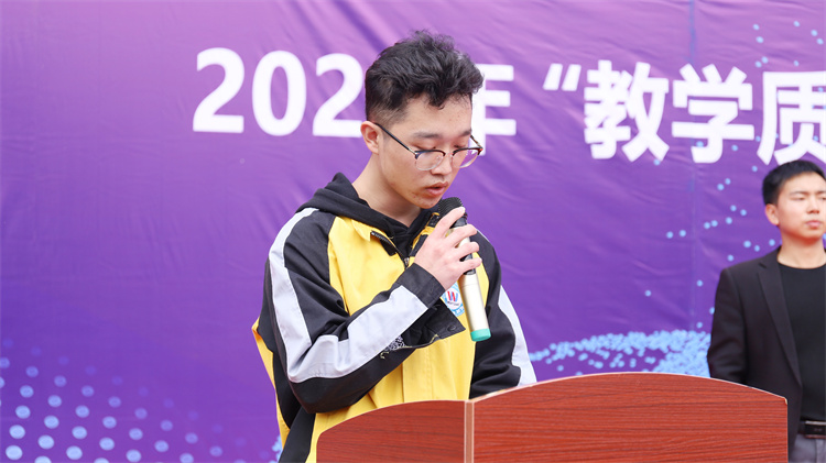作為教師代表,呂老師也上臺(tái)發(fā)言。他強(qiáng)調(diào)了教師在教學(xué)質(zhì)量提升中的重要作用,并表示將一如既往地致力于教學(xué)品質(zhì)的提升,為學(xué)生的成長(zhǎng)和發(fā)展貢獻(xiàn)自己的力量。